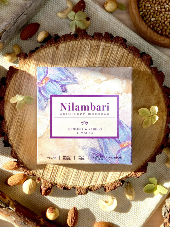 Состав: масло какао натуральное, нектар кокосовых соцветий (кокосовый сахар), кешью, кокосовая мука, манго сублимированное, гречишный чай
