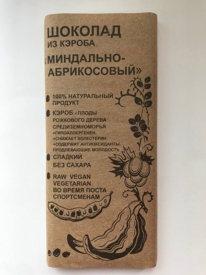 Состав: какао-масло холодного отжима, кэроб сырой, миндаль, ядра абрикосовых косточек